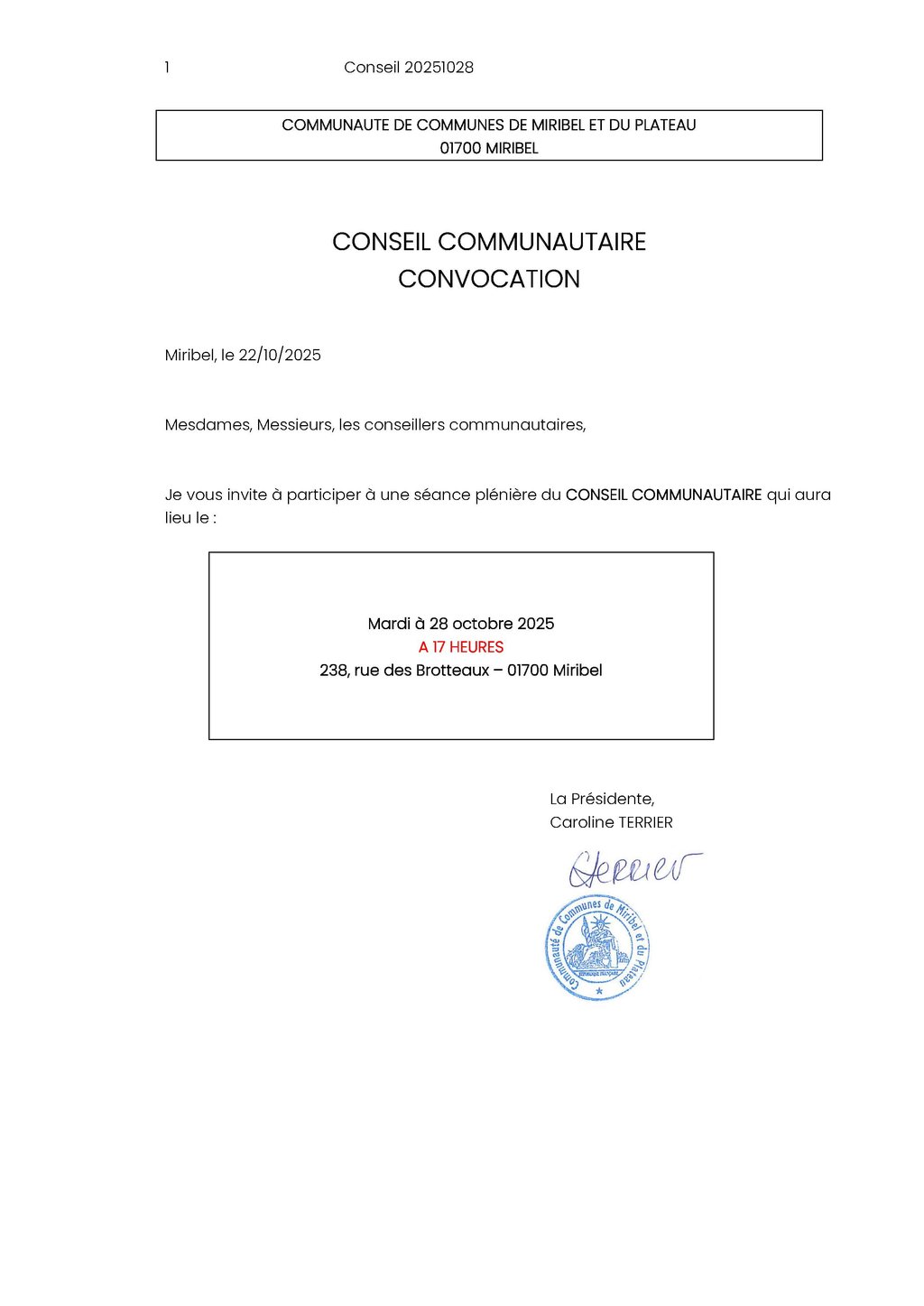 Convocation Conseil Communautaire