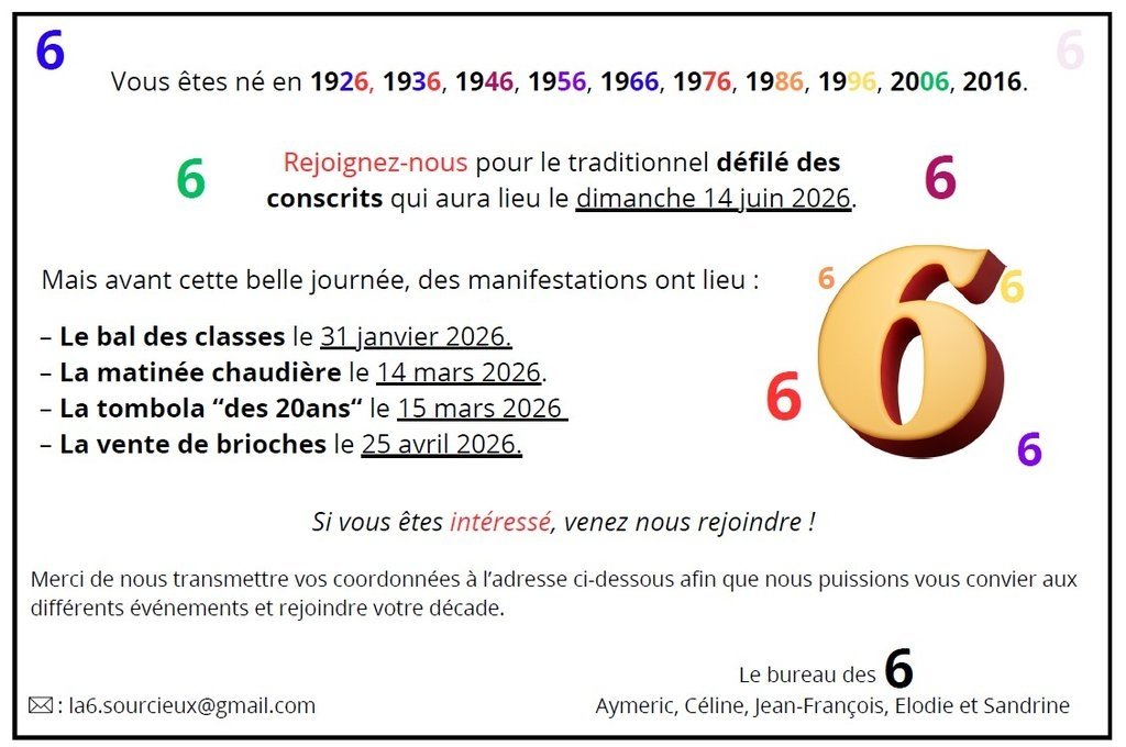 Rejoignez-nous pour le traditionnel défilé des conscrits qui aura lieu le dimanche 14 juin 2026.