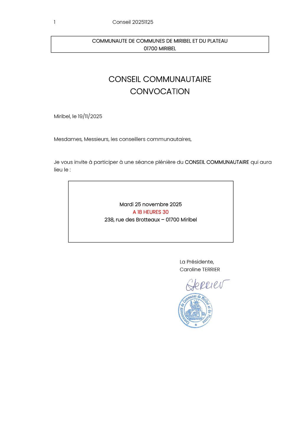 Le Conseil Communautaire de la CCMP se tiendra le mardi 25 novembre 2025 à 18h30, au siège de la CCMP (238 Rue des Brotteaux, 01700 Miribel).