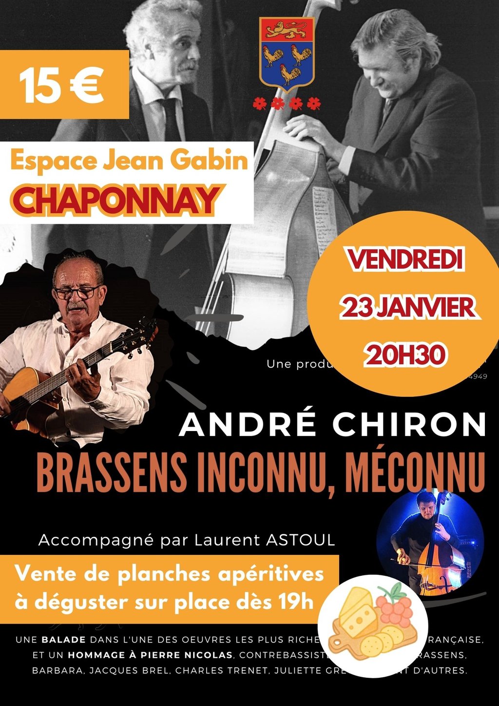 Pour cette première soirée, place à un hommage tout en finesse à Georges Brassens, porté par Alain Chiron, interprète sensible et passionné, accompagné de Laurent Astoul à la contrebasse 🎸🎶