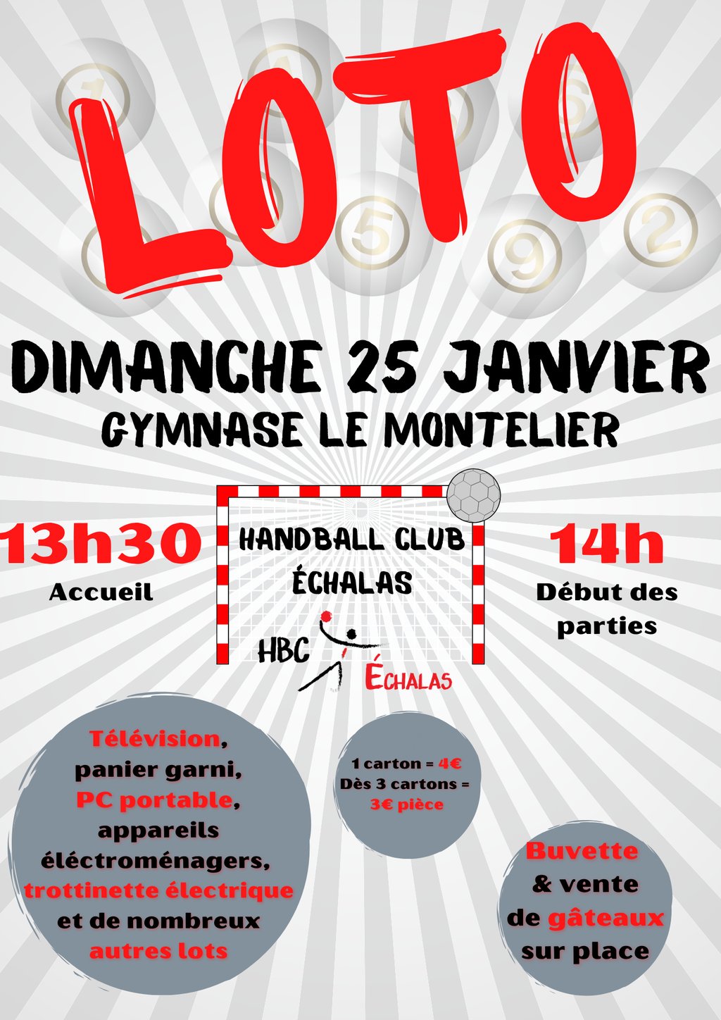 Le handball club d’Échalas organise le dimanche 25 janvier son traditionnel loto au Montelier.