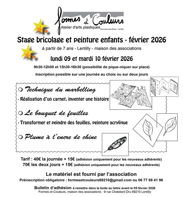 Stage bricolage et peinture enfants organisé par l'association Formes et Couleurs
